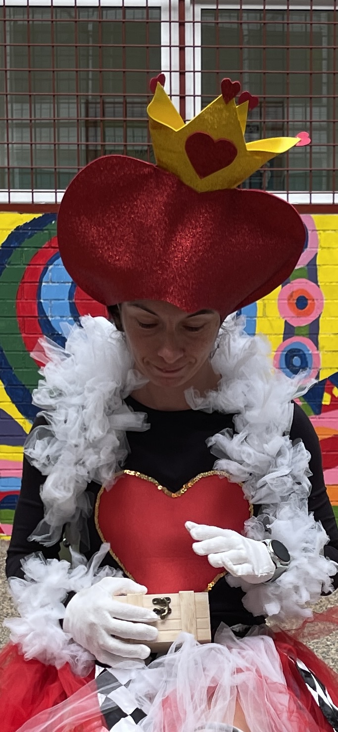 La Reina ha aparecido muy enfadada… está furiosa 😡 porque sabe que el Sombrerero ha conseguido la Llave del Corazón 🔑❤️. Ha advertido a nuestros aventureros que, si no le cuentan dónde está la llave, ¡congelará los recreos! ❄️🛑 Y, desconfiando del Sombrerero, sospecha que las tazas y las teteras 🫖 esconden algo… Mientras intentaba descubrir el secreto, todos los niños y niñas le han dicho palabras bonitas, muy dulces y con mucho cariño 💛✨… pero parece que no lo ha llevado nada bien 😖 Ha intentado abrir las teteras una por una… pero algo inesperado ha ocurrido… La Reina no ha podido soportarlo: